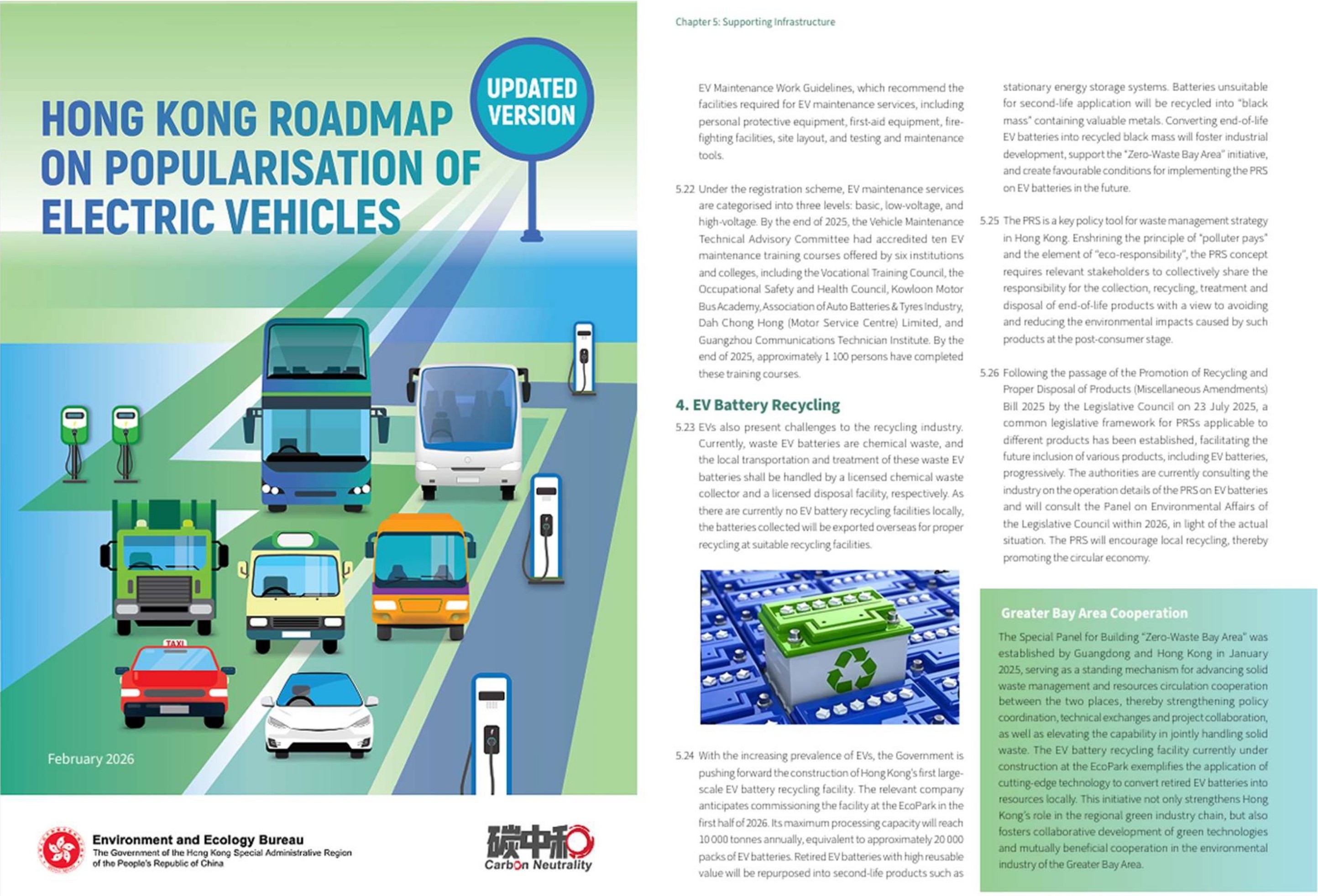 In a previous written reply to a question from a Legislative Council (LegCo) Member, the Secretary for Environment and Ecology, Mr. Tse Chin-wan, emphasized: “This facility aims to convert retired EV batteries into recycled black mass to be supplied to the Mainland and neighbouring regions. It will not only promote the development of the EV battery recycling industry, and strengthen Hong Kong’s role in the regional green industry chain, but also serve as a good model for mutually beneficial co-operation in the environmental industry of the Guangdong-Hong Kong-Macao Greater Bay Area “, Mr. Tse also indicated that the Government is currently consulting the trade on the operation of the PRS on EV batteries, and expects to consult the Legislative Council (LegCo) Panel on Environmental Affairs on the implementation details within 2026.